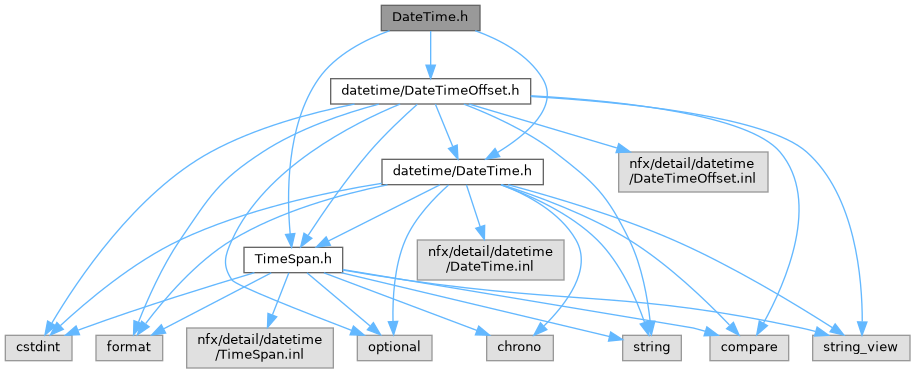 Includes all temporal types: DateTime, DateTimeOffset, and TimeSpan. This single header provides convenient access to the entire nfx::time namespace. For selective includes, use individual headers from nfx/datetime/ subdirectory.