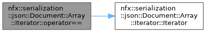 | bool nfx::serialization::json::Document::Array::Iterator::operator== | ( | const Iterator & | other | ) | const |